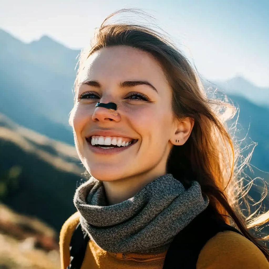 Basta con pegar la banda magnética a la nariz y dejar que haga su magia. Con una suave elevación, las fosas nasales se abrirán y la respiración será más suave.