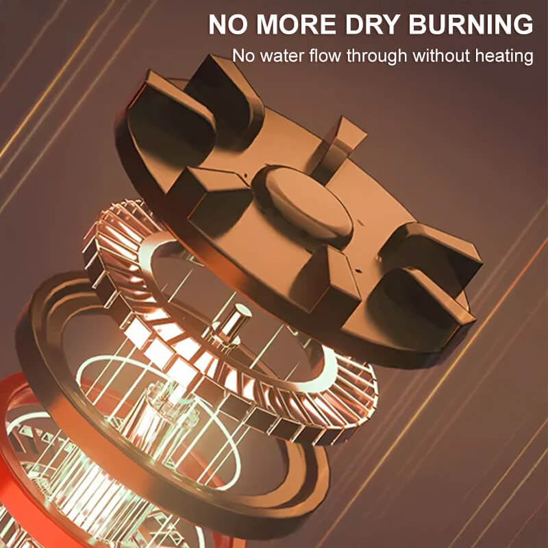 Wyposażony w wiele urządzeń zabezpieczających, każdy element przechodzi rygorystyczne testy, aby zapewnić 100% bezpieczeństwa. Wewnętrzne przewody wodne i elektryczne są zaprojektowane tak, aby działały oddzielnie, aby uniknąć wycieków lub szkód związanych z osadzaniem się kamienia. Bezpieczny grzejnik, oszczędność energii elektrycznej, oszczędność wody, brak zanieczyszczeń, brak spalin Temperatura jest regulowana przez zawór regulujący przepływ wody lub przełącznik kranu.